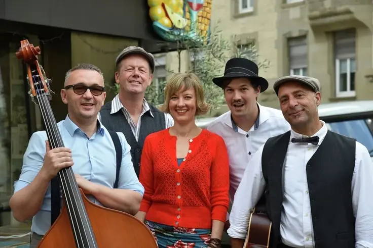 des nostalgischen Popjazz werden von der Band um die Sängerin Astrid Krüger-Heller mit großer Leichtigkeit und einer guten