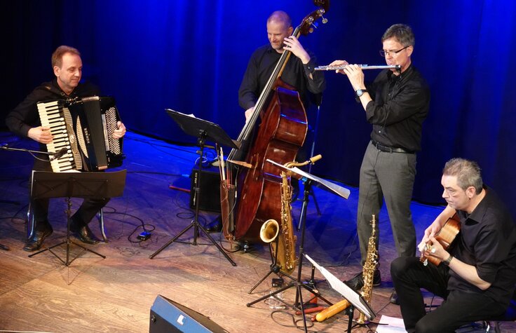 All dies präsentieren die Stuttgarter Musiker in der Besetzung: Saxofon/Querflöte (Jürgen Häussler),  Akkordeon (Thomas Ott-Grafenau), Gitarre (Michael Nessmann) und  Kontrabass (Helmut Siegle). Alle haben sich in der Stuttgarter Jazz-Szene durch viele Bandprojekte und  Mitwirkung an Theater- und Musicalaufführungen einen Namen gemacht.