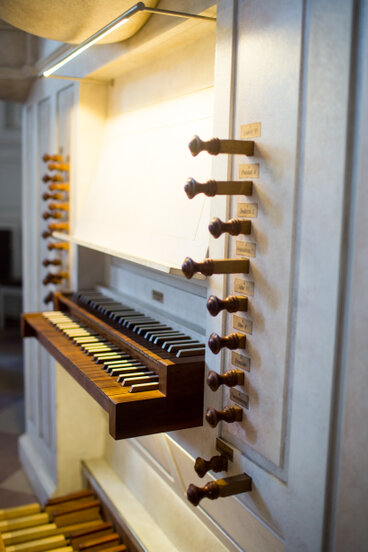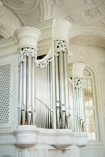Die Orgel in der Schlosskapelle Solitude wurde im Rahmen einer Gesamtrenovierung der Schlossanlage (1988-1991) von der Werkstätte für Orgelbau Mühleisen GmbH, Leonberg, neu erbaut und 1992 eingeweiht. Entstanden ist ein kleines, aber außerordentlich vielseitiges Instrument, das Zuhörer und Interpreten gleichermaßen begeistert!